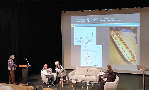 Eric Rieth, directeur de recherche au CNRS a présenté le résultat des fouilles subaquatiques menées sur l’épave de Beutin dans la Canche. La FRCPM a été le support administratif de ces fouilles à plusieurs reprises. Lors d’une intervention consacrée à son métier d’architecte naval, François Vivier a évoqué le chantier de restauration du dundee Lorette. Anne Sophie Rieth a présenté les premiers résultats du travail d’enquête visant à inscrire les savoir-faire de la construction navale traditionnelle à l’inventaire du patrimoine immatériel. Une partie de ce travail a été mené au chantier naval d’Etaples et dans celui de la FRCPM à Calais.